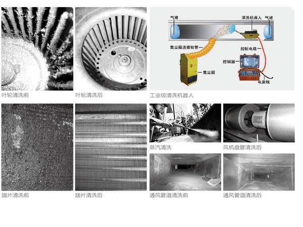 隨著空調(diào)使用年限的增加,通風(fēng)系統(tǒng)內(nèi) (管道、風(fēng)機(jī)盤管的翅片、渦輪電機(jī)的扇 (管道、風(fēng)機(jī)盤管的翅片、渦輪電機(jī)的扇葉、新風(fēng)機(jī)組換熱板翅片、空氣過濾器等)逐漸堆積起了大量的污染物,既增加了設(shè)備的負(fù)荷又浪費了電力還給室內(nèi)的空氣帶來了極大的污染。這些灰塵中有大量有害的細(xì)菌、霉菌、軍團(tuán)菌和病毒,嚴(yán)重威脅我們的健康,《2002年世界衛(wèi)生報告》將室內(nèi)空氣污染列為人類健康十大危害之一。我們在享受舒適的同時它也給我們帶來了污染和危害。
